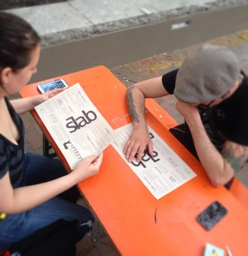 The menu presented a challenge because like a lot of places with amazing beer offerings, Emily Kingsbury, the beer goddess of Slab, wanted the ability to change the menu daily AND have those offerings on the menu. I set her up with a word doc template designed and styled after the style of the menu, so that she will be able to print the drinks on the back of the menu.